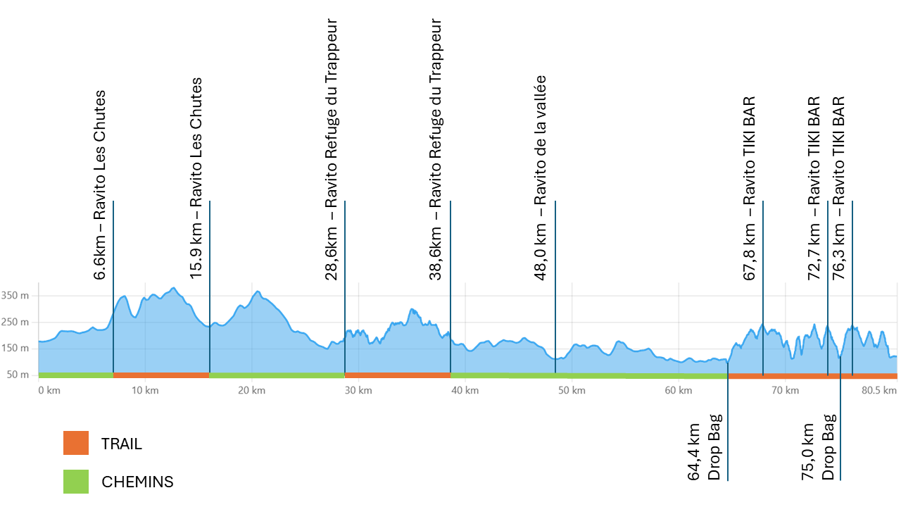 Il sera possible de se déplacer facilement en voiture d’un ravito à l’autre. Pour des fins de sécurité routière, les crews seront permis uniquement dans les zones de ravitaillement.